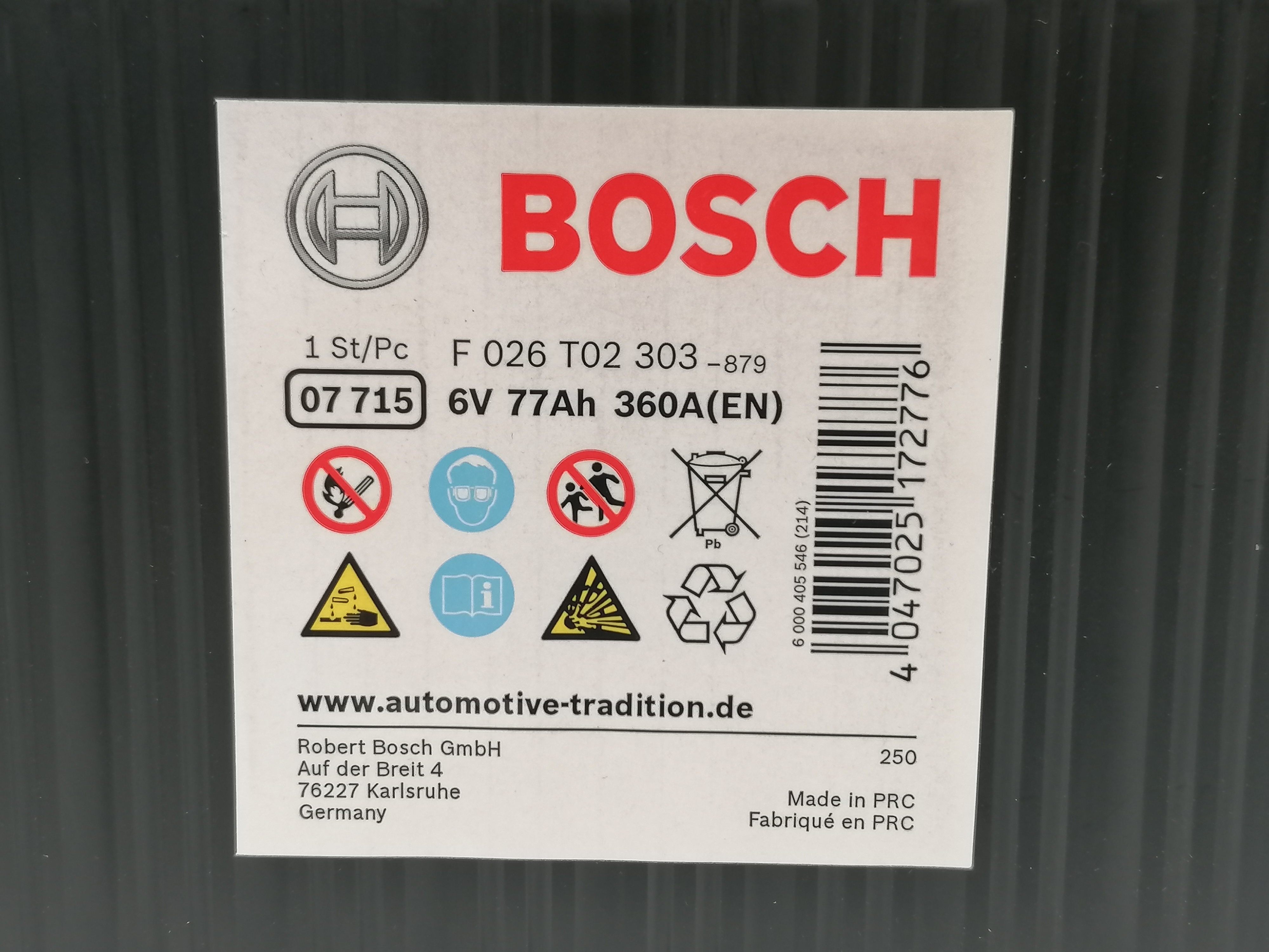 Produktinformationen "Bosch Klassik Oldtimer Batterie 6 V 77 Ah DIN 07715"