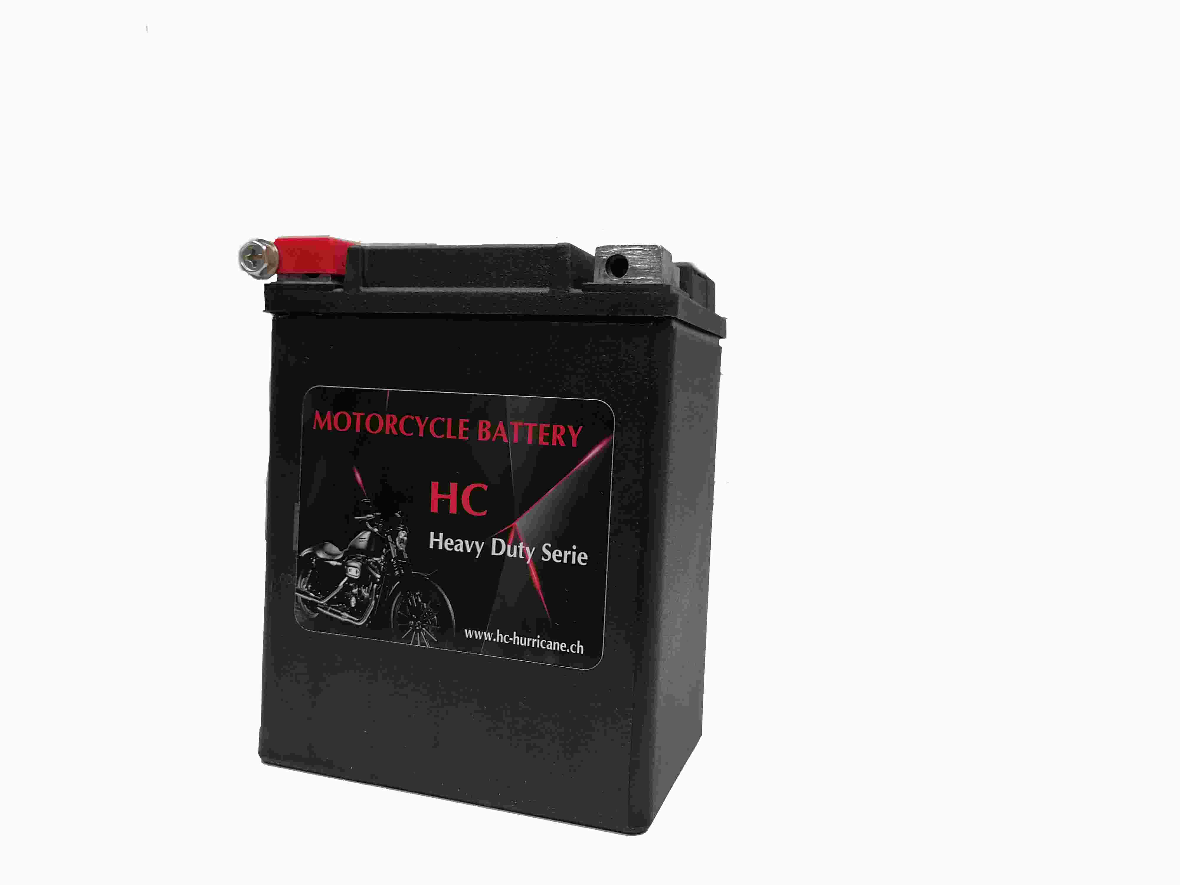 Die Hurricane HC15 werden in einer extra robusten und rüttelfesten Ausführung gebaut. Sie erfüllen deshalb auch die hohen Anforderungen an die Starterbatterie in grossmotorigen Bikes wie z.B. Harley-Davidson oder Indian. Die HC Motorcycle Batterien können in allen Lagen eingebaut werden. Mit ihrer hochentwickelten und geprüften Qualität sind die Batterien absolut wartungsfrei und auslaufsicher.